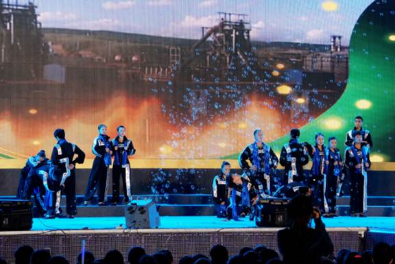 (由全国煤矿文工团表演的舞蹈——黑金,展示“煤城”石拐的精神力量)